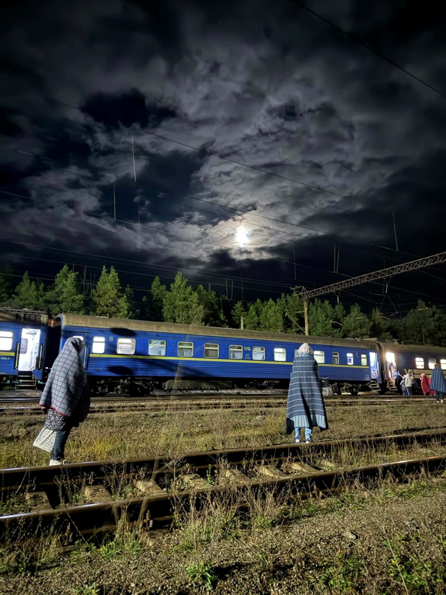 Але люди діляться власними спостереженнями. Так, Катерина Бобош у своєму threads написала короткий пост про одну з таких вимушених зупинок поїзда серед ночі: