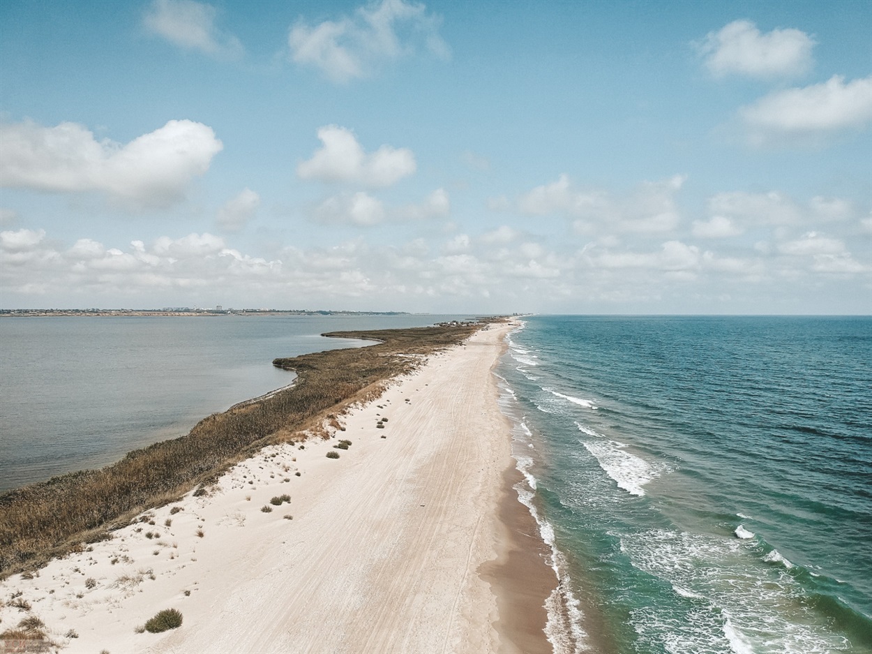 Коса, що простягнулася вздовж материка на два десятка кілометрів, з одного боку упирається в селище Курортне, а з протилежного закінчується в Затоці. Ширина коси в районі курорту — від 50 до 150 метрів. З південного боку вона омивається Чорним морем, а на звороті —лікувальними водами лиману. На більш широких ділянках побудовані бази відпочинку і кафе. З чорноморської боку по всій довжині розташований широкий піщаний пляж. Вхід в море пологий, дрібно-піщаний з домішкою роздробленої мушлі. Море мілке. Глибина в зріст людини починається за 25-30 метрів від берега. Тут дуже комфортно купатися дітям і дорослим.