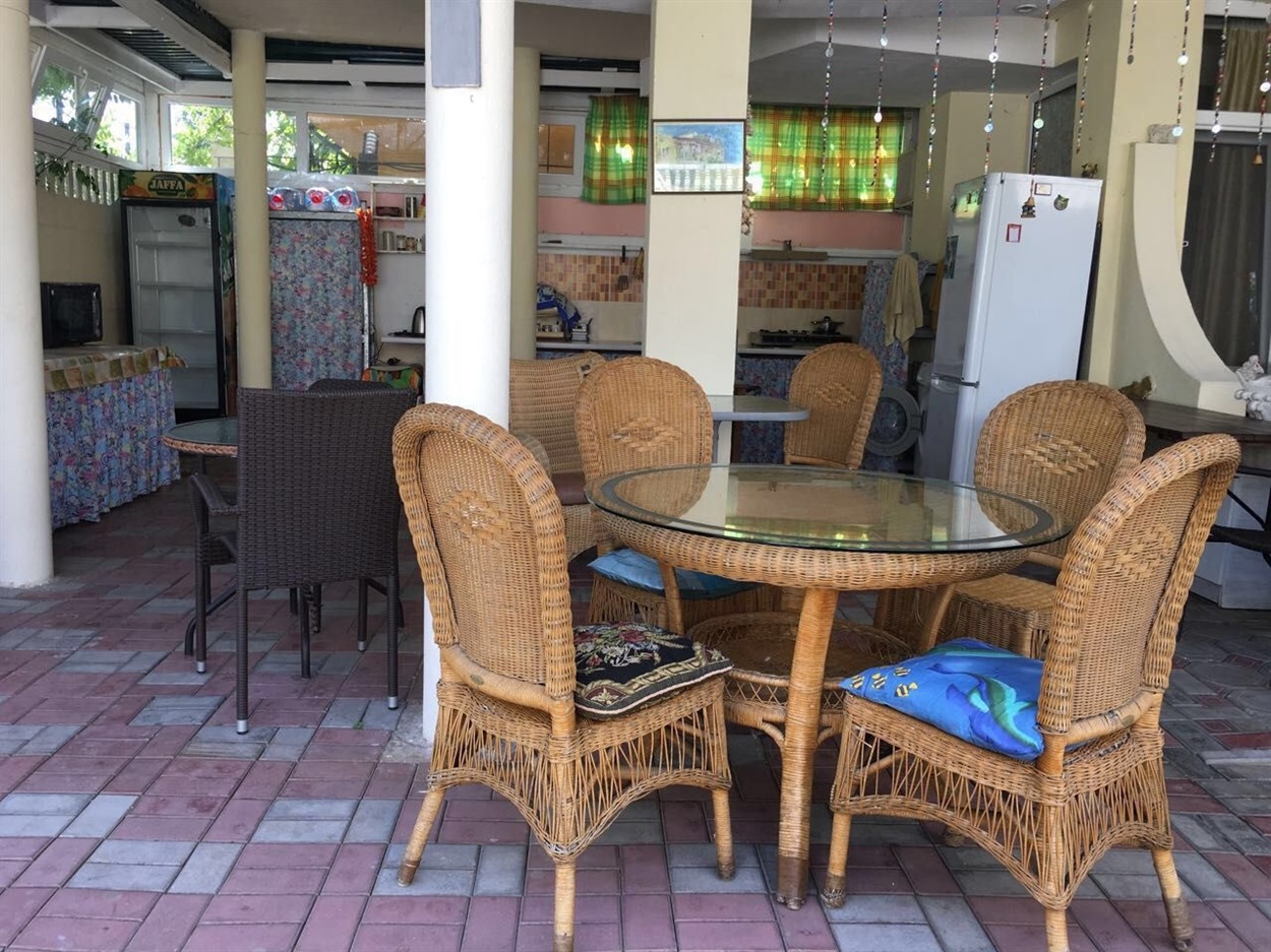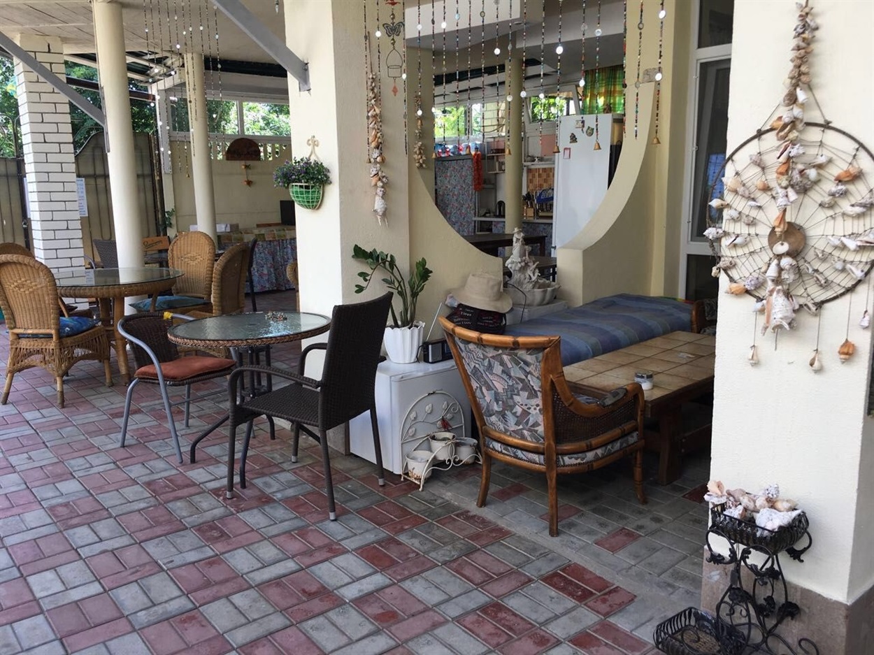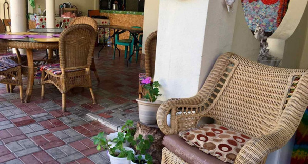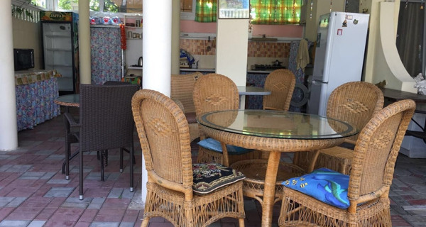 Возле каждого номера находится уличная мебель: столик и кресла.