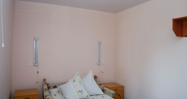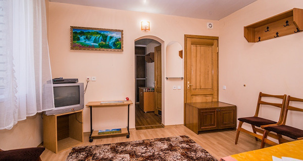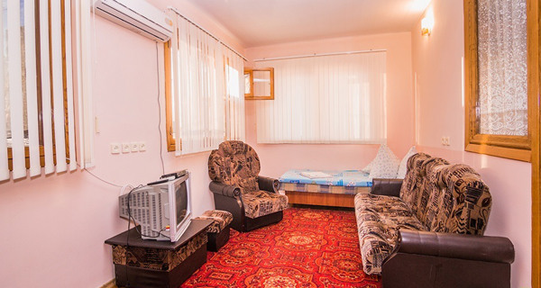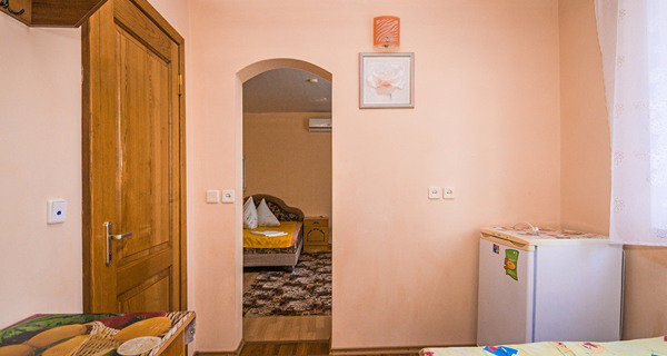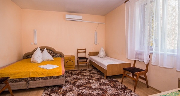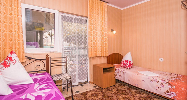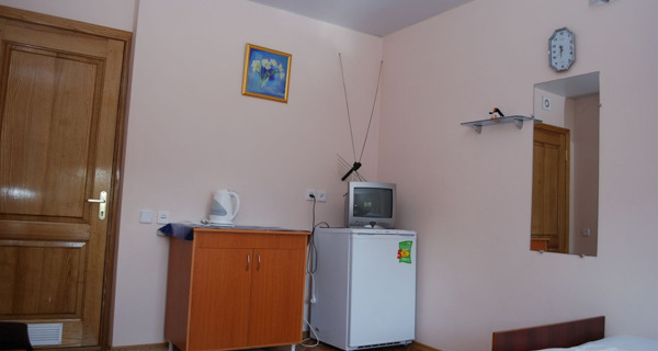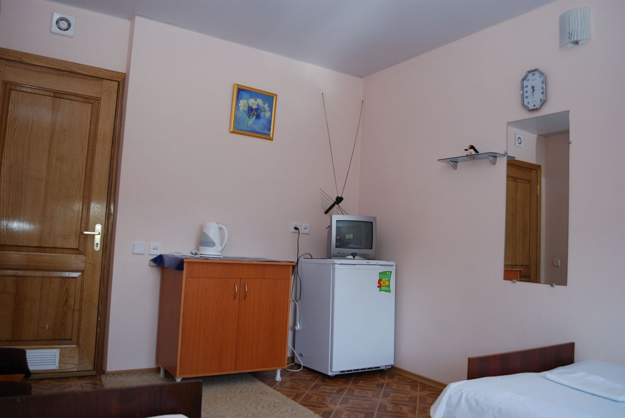Номера эконом (холодильник, телевизор, шкаф, тумбочка и стулья). Общая кухня, туалет и душ находится во дворе, стандарт (холодильник, телевизор, кондиционер, спутниковое ТВ, душ, туалет, стол, стулья, общая кухня), люкс (холодильник, телевизор, кондиционер, спутниковое ТВ, душ, туалет, необходимая мебель, посудой, кухня в номере).