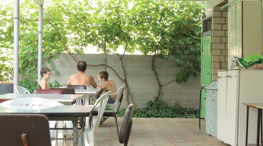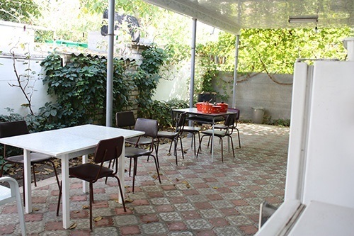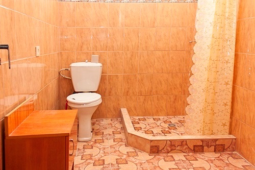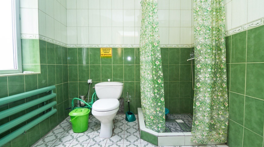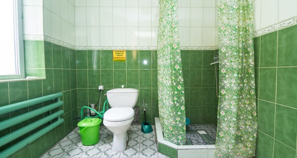 Дополнительный туалет, душ с горячей водой на территории. Кухня общая на территории под навесом, холодильник на две семьи.