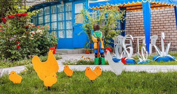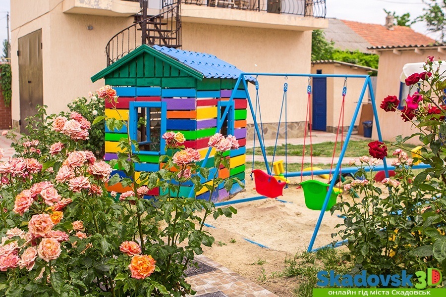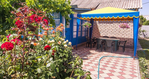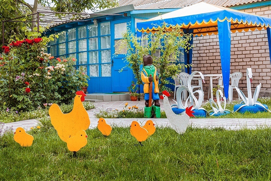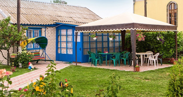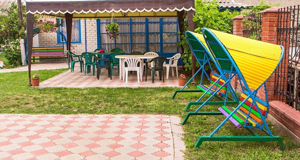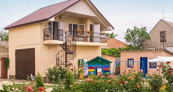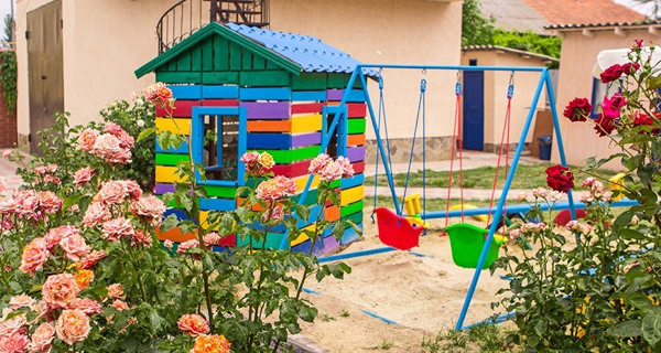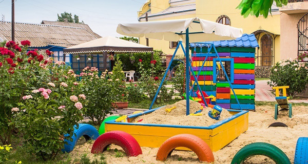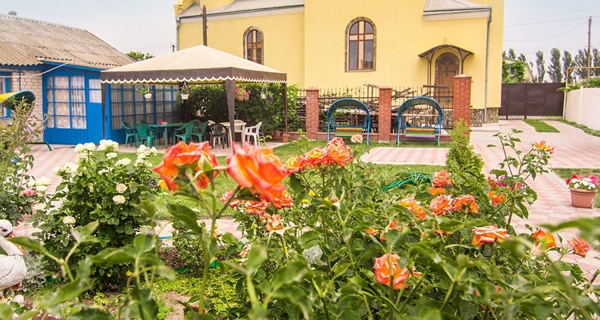 На территории: большой двор с розами, детская площадка и зоны отдыха. Во дворе расположено три коттеджа, один новый двухэтажный.
