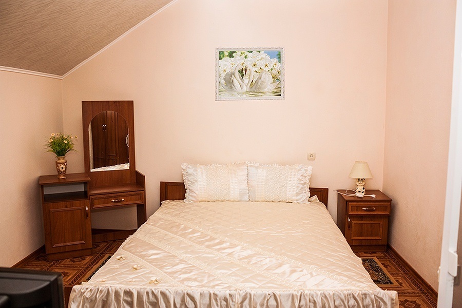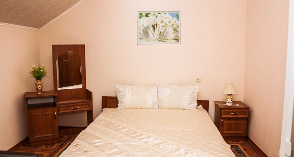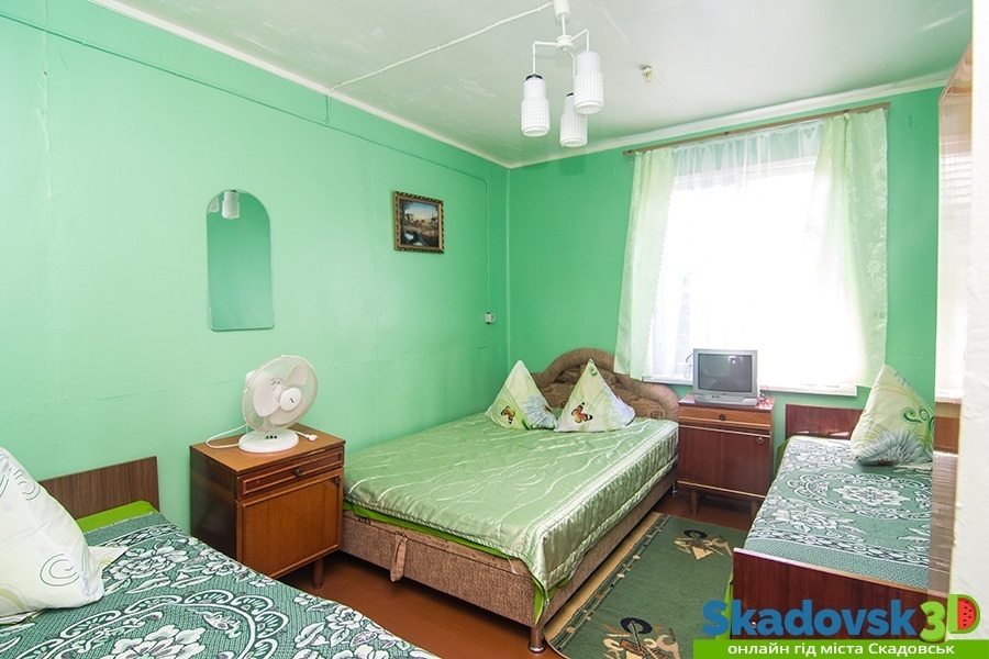 - Второй коттедж - 3 комнаты - на 4 человека, одна - на 3 человека. Есть два туалета на дом, кондиционер. Цена с человека от 150 грн.