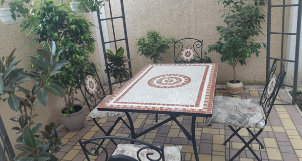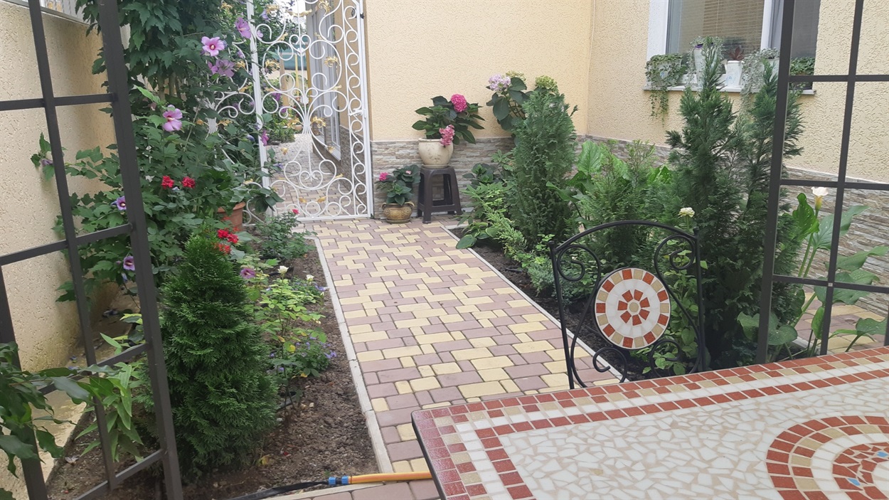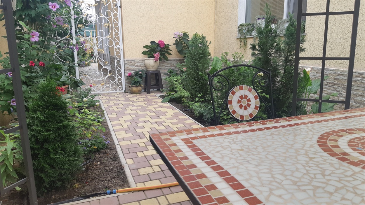 Двухэтажный гостевой дом включает 2 люкса и 4 полулюкса с общей кухней. В номерах сделан качественный ремонт, установлена новая мебель, есть санузел с душем, кондиционер, телевизор. В люксах есть своя кухня. Тихий внутренний двор, беседка. Отдыхающие обеспечиваются постельным бельем и туалетными принадлежностями (кроме полотенец).