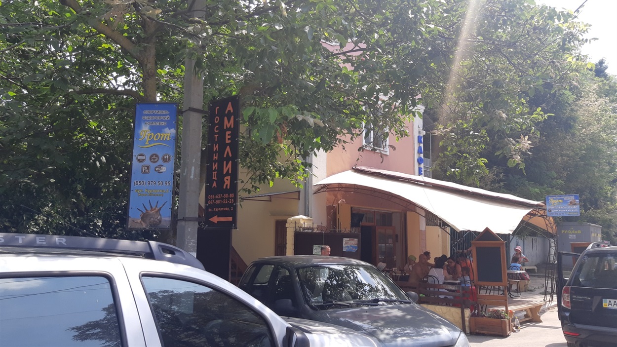 Отель расположен возле центрального пляжа. Рядом располагается Луна-парк и аквапарк, центральная набережная. Все проживающие в "Гроте" получают скидки на их посещение. Также недалеко находится пляжный клуб "Маями" с бассейном.