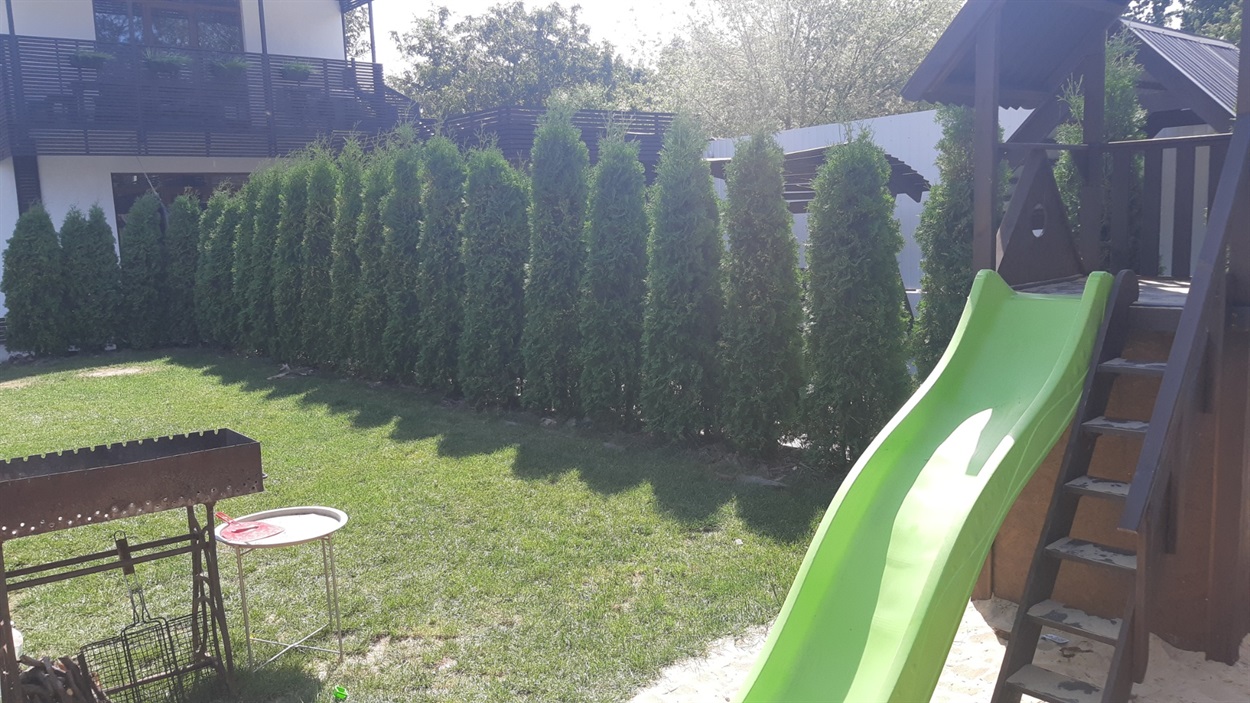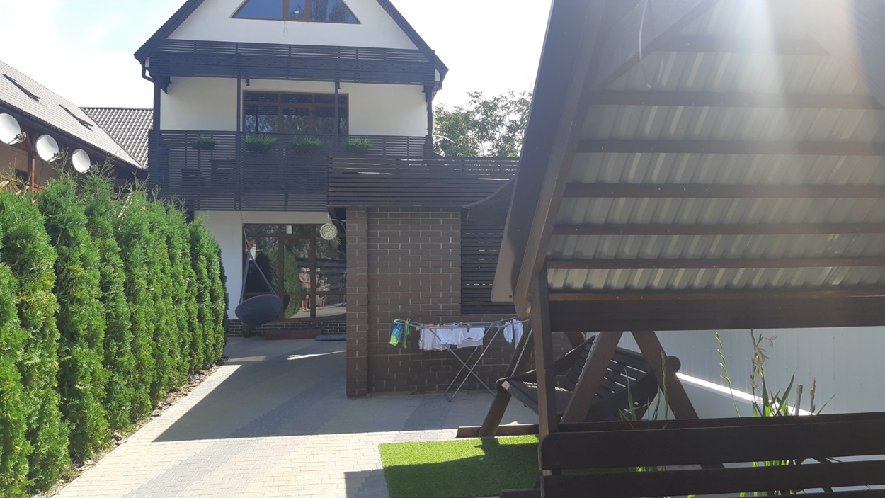 На территории есть беседки, мангал, велосипеды для детей, качели-коконы.