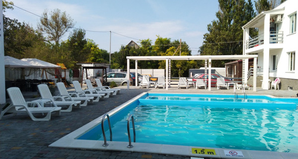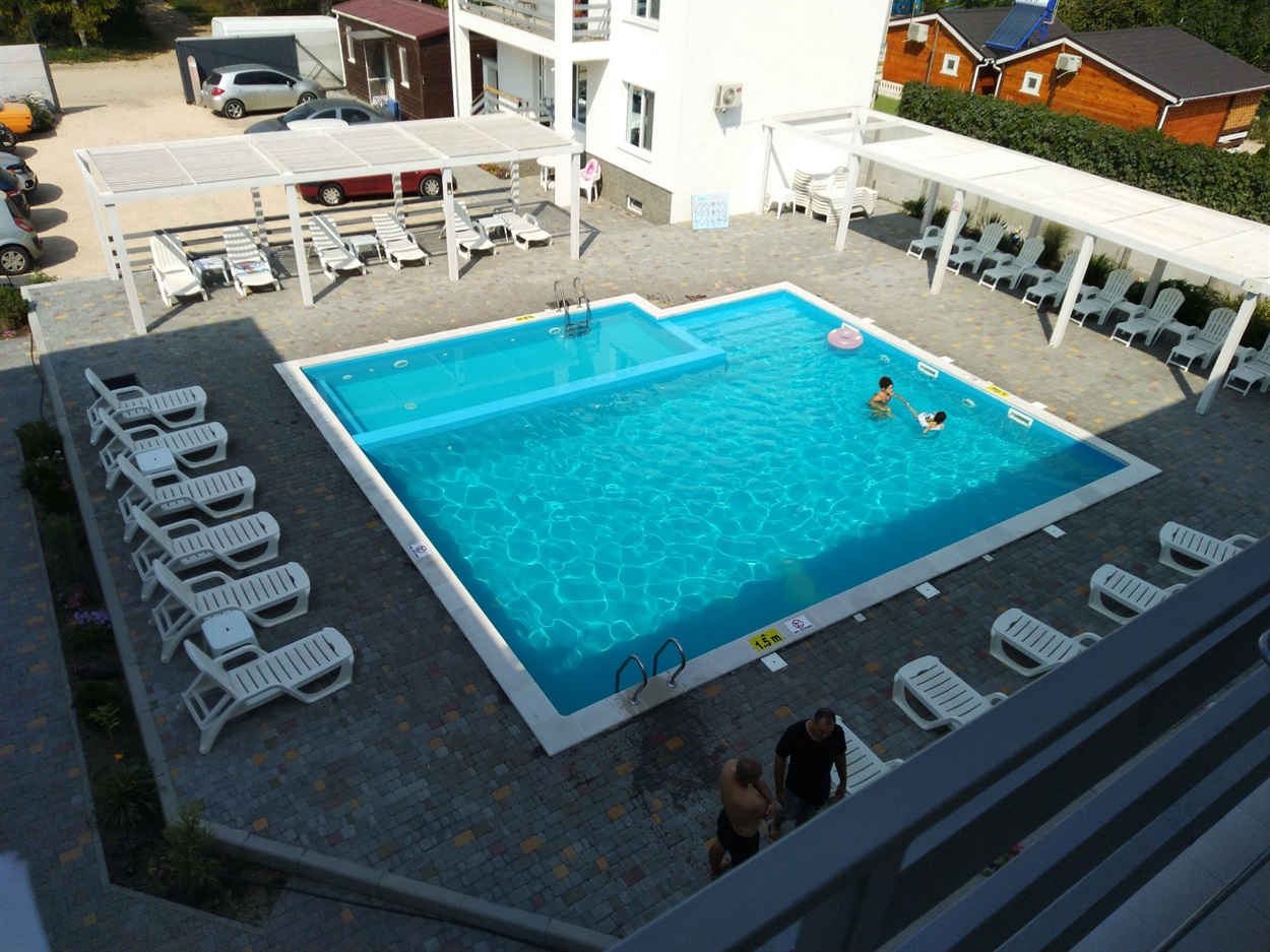 На территории есть два бассейна с подогревом, один с системой гидромассажа, детская площадка, парковка, мангальная зона. Есть возможность заказа комплексного питания.