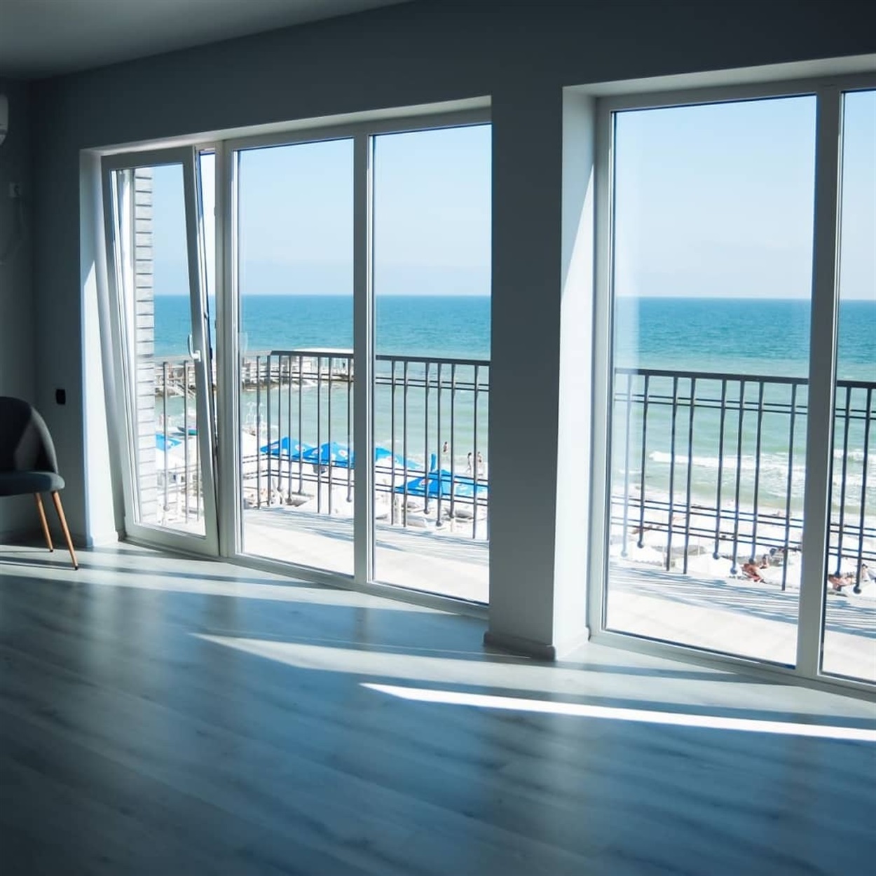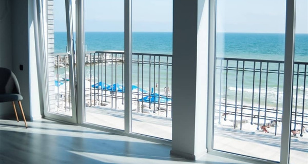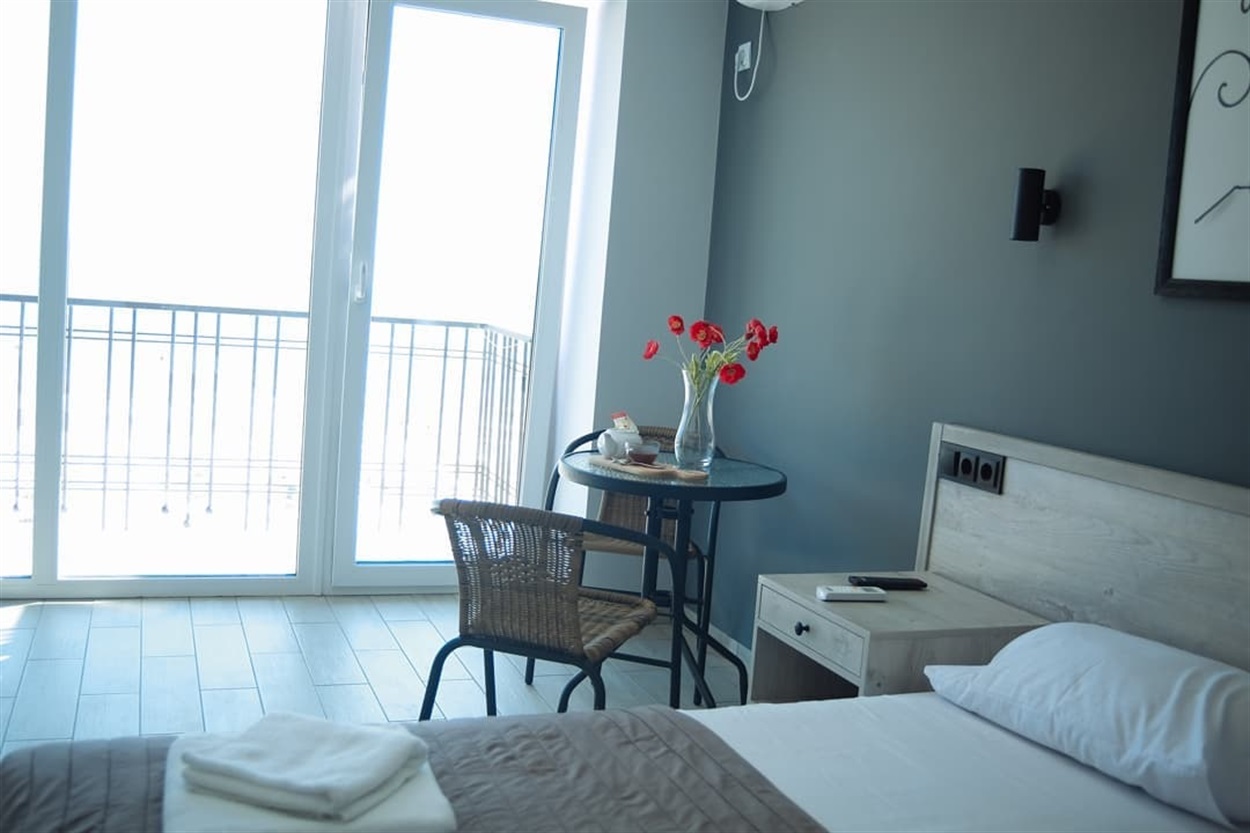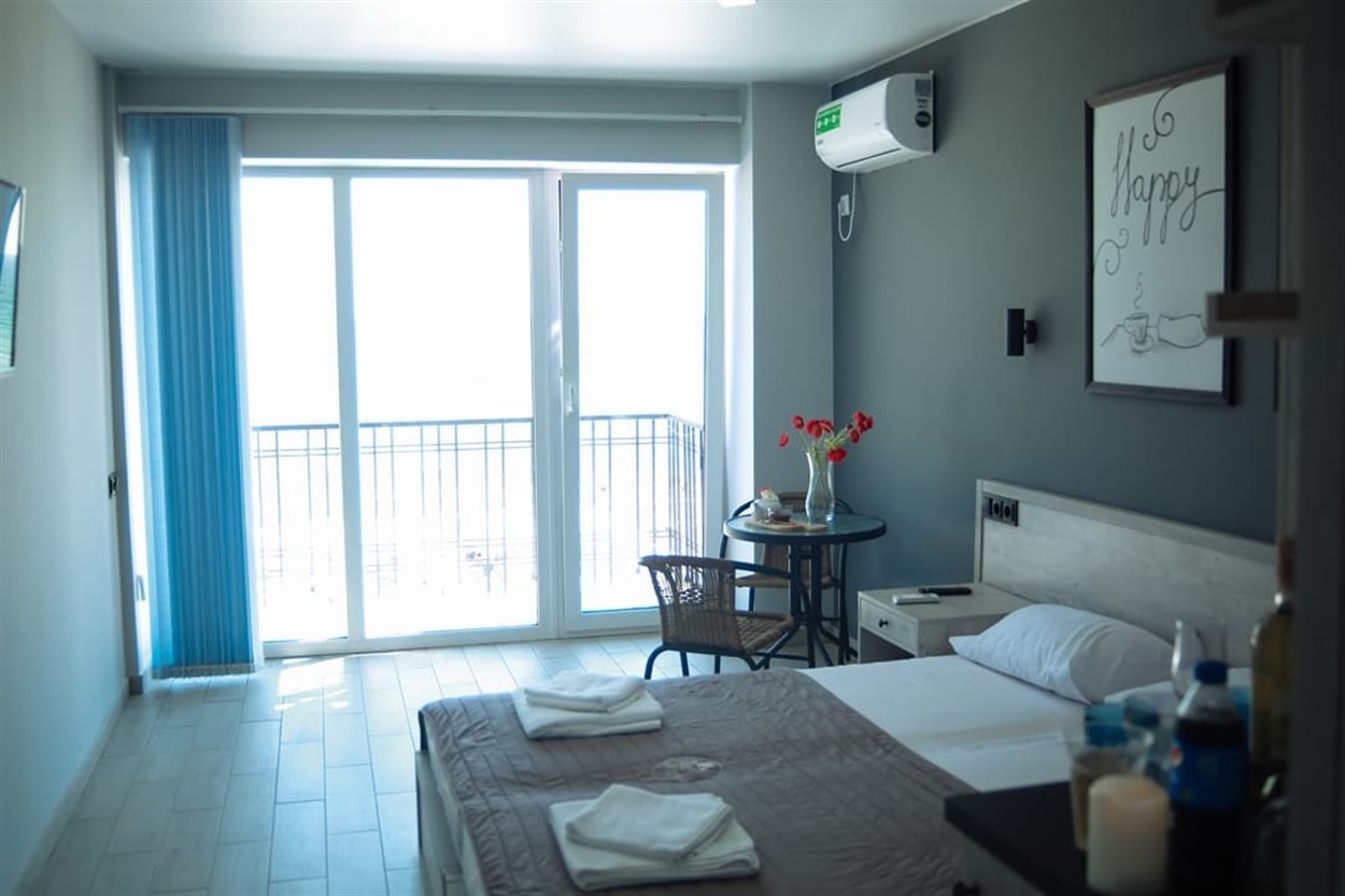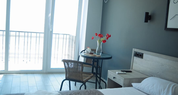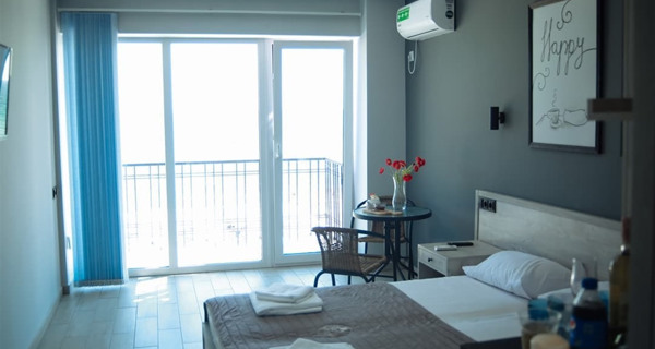Отель открылся в 2020 году. Расположен на набережной Железного Порта. Расположен на набережной Железного Порта (первая линия), окна номеров выходят на набережную. Номера повышенной комфортности с евроремонтом, с большими панорамными окнами, балконом и видом на море. Есть все удобства: телевизор, кондиционер, холодильник, душевая и санузел. На первом этаже есть ресторан.