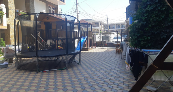 Семейный полулюкс (1-комнатный, 3-местный номер, арка) - двуспальная кровать, диван, кондиционер, спутниковое ТВ, холодильник, столовый и чайный сервиз, санузел (душ, унитаз, умывальник, количество полотенец – 2 на человека). Общая терраса.