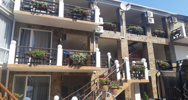 2-комнатный, 4-местный номер, общая площадь – м.кв.) - 2 спальни (2 двуспальные кровати, диван, кондиционер, 2 спутниковое ТВ , холодильник, электрочайник, столовый и чайный сервиз, санузел (душ, унитаз, умывальник, фен, количество полотенец – 2 на человека). 2 балкона с видом на море.