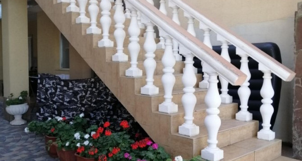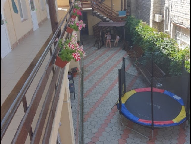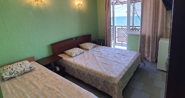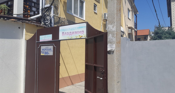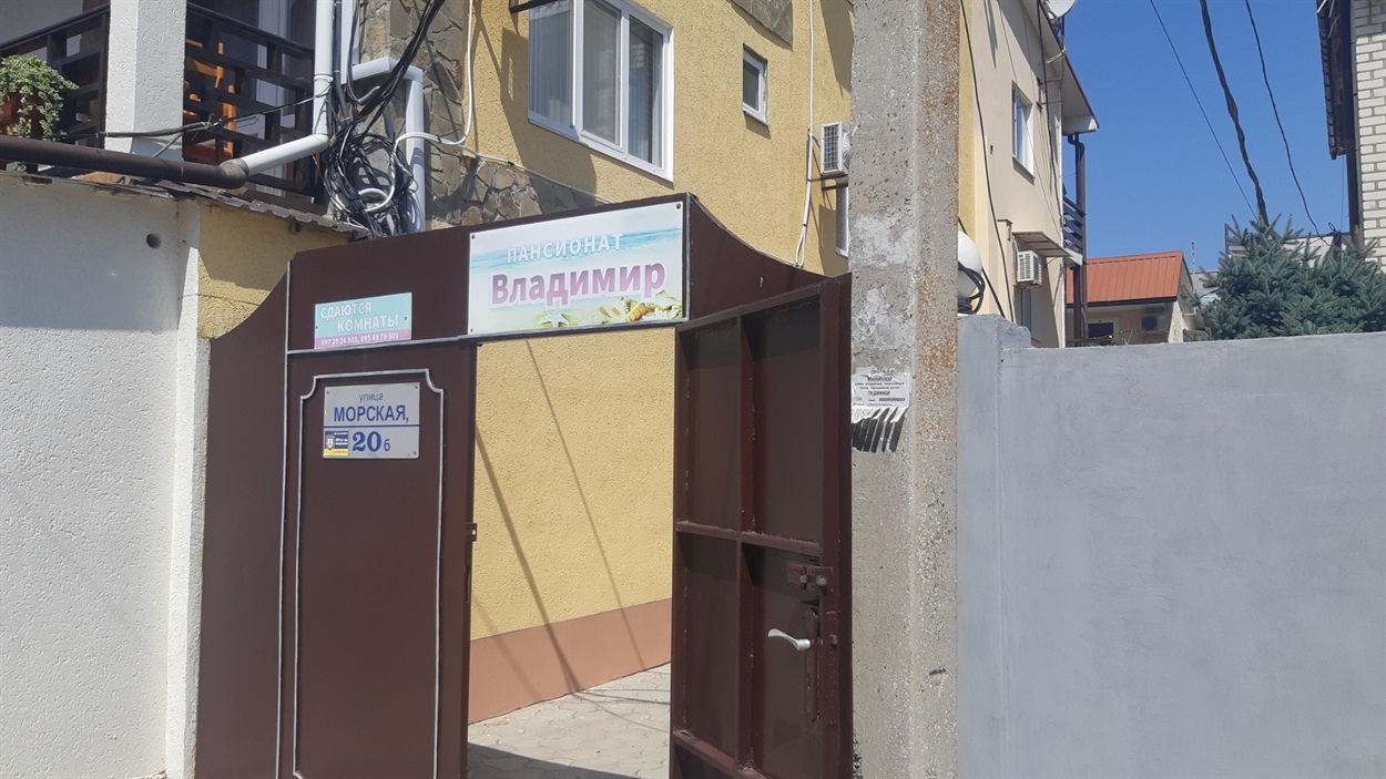 Пансионат "Владимир" находится на первой линии, в 50 метрах от пляжа. Два корпуса имеют 27 номеров. Есть общая кухня, лавочки, столики для отдыха и садовые качели. Уборка номеров и смена белья производится один раз в пять дней.