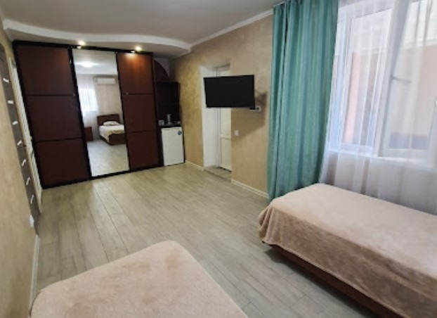 - 2-х местный номер "Стандарт". Есть необходимая мебель, вентилятор, холодильник, TV, wi-fi, санузел в номере, холодная и горячая вода круглосуточно.