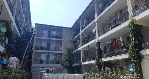 Пансионат "Катрин" расположен на первой береговой линии в центре курортного поселка Железный порт на Черном море. До пляжа несколько минут ходьбы. Рядом расположен рынок.