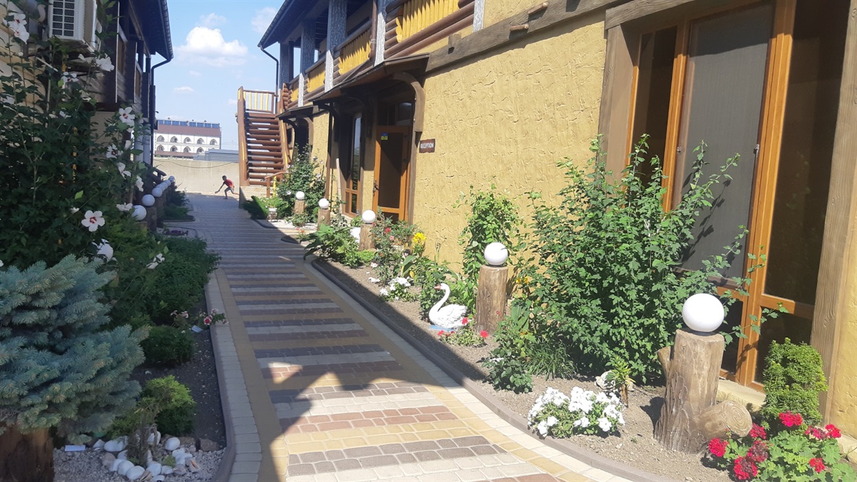 На территории отеля есть летняя терраса со столиками и зоной барбекю, у главного входа есть ресторан. Для любителей банного отдыха, на территории отеля есть баня с парной и комнатой отдыха. В каждом номере: туалет, душ, ЖК телевизор, цифровое ТВ, бесплатный Wi-Fi, холодильник, шкафы, шторы с полным затемнением.