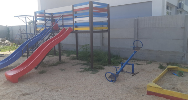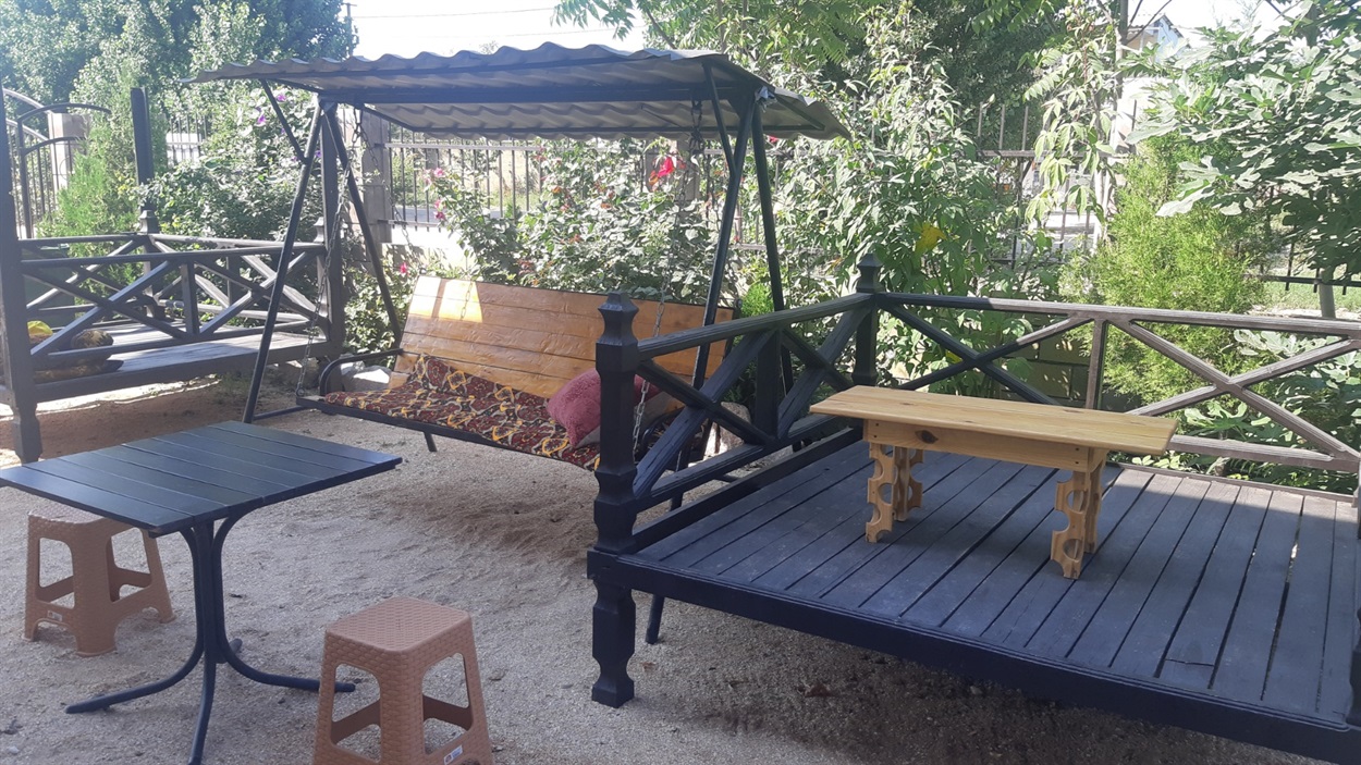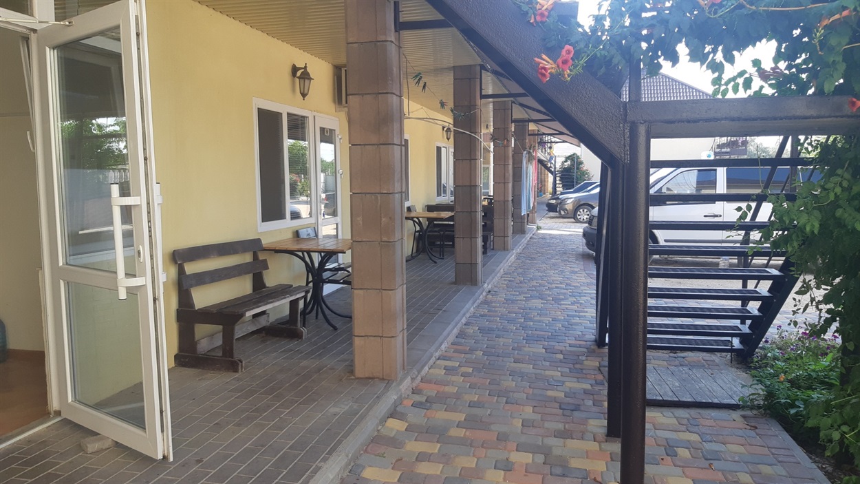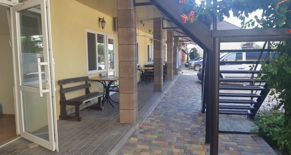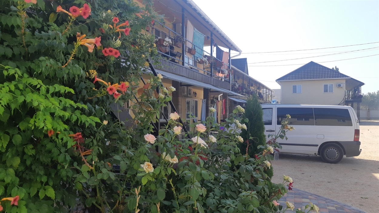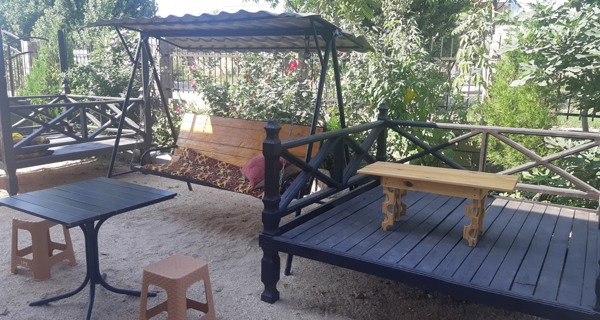 Территория большая, много цветов, беседок и качелей. Есть кафе с крымско-татарской кухней. Большая стоянка для автомобилей.