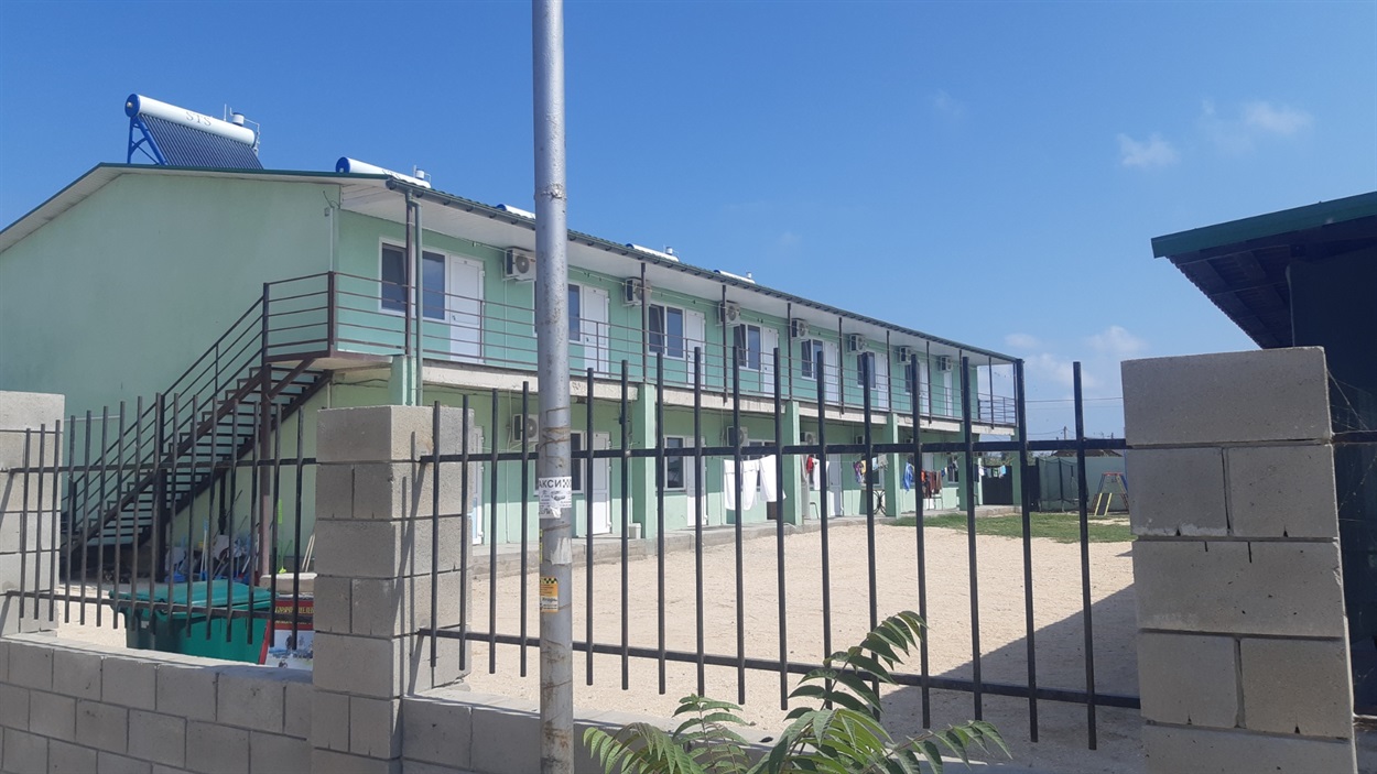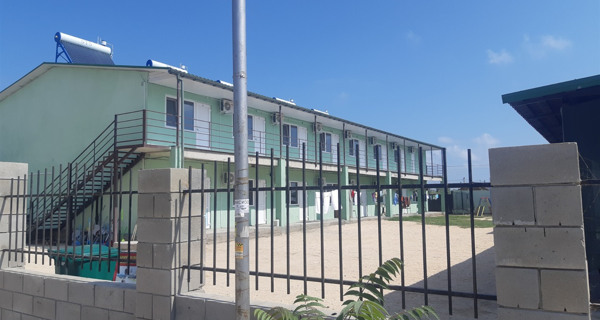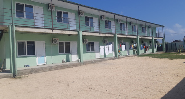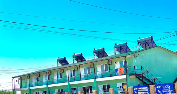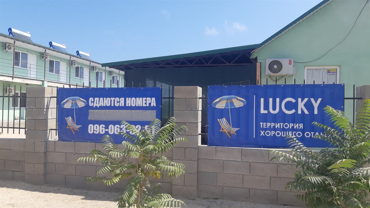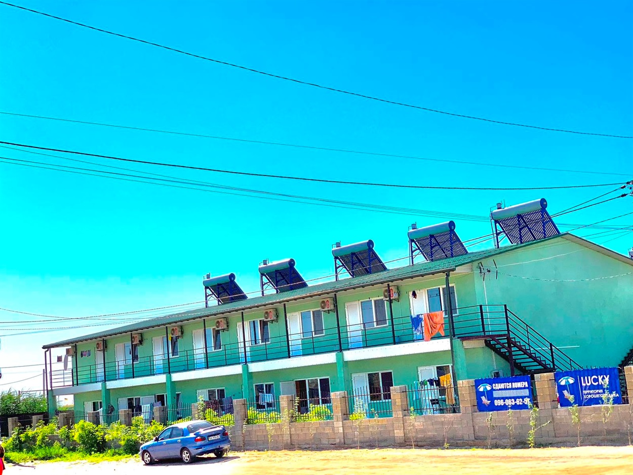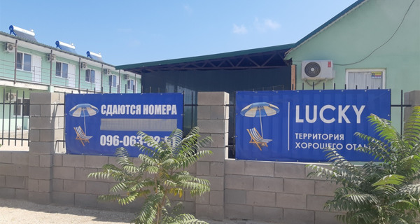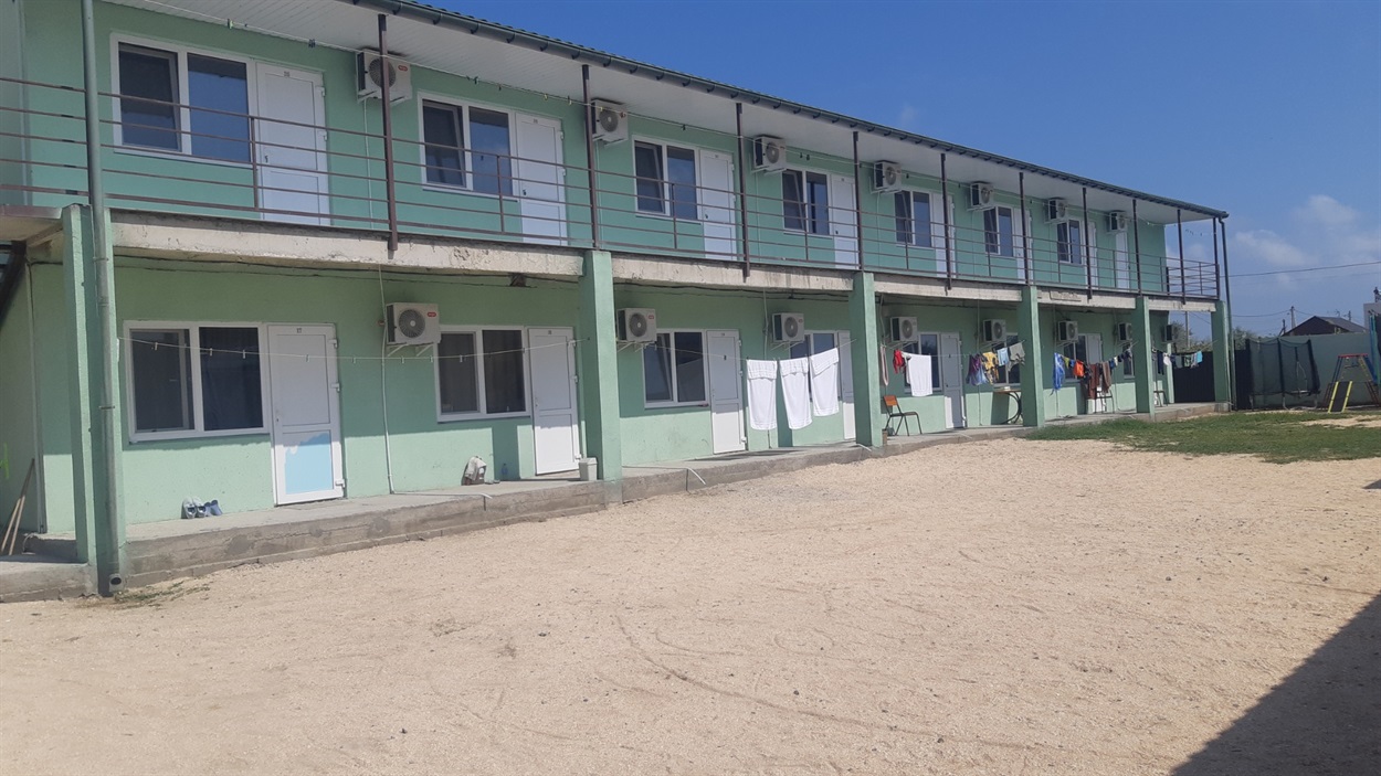 Отель находится в километре от центра Счастливцево (колесо обозрения) на первой линии в 200 метрах от моря.