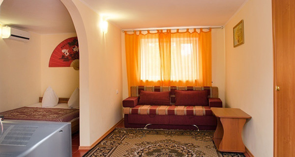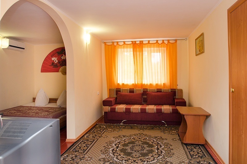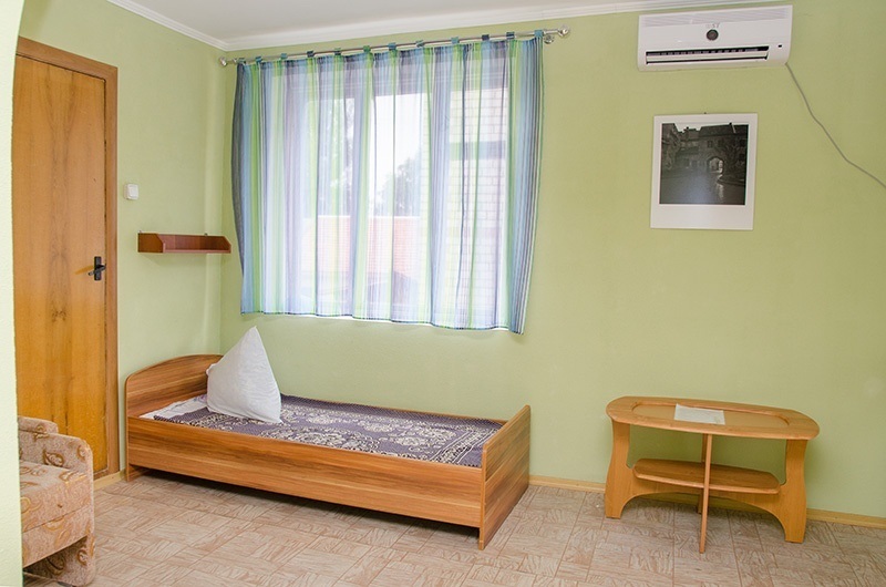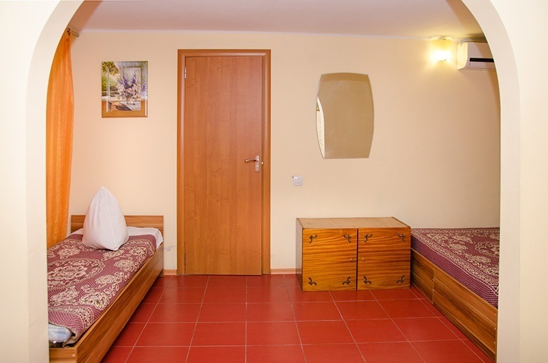 Санузел есть в каждом номере, в пяти установлены кондиционеры. Небольшой дворик, общая кухня, мангал.