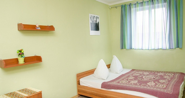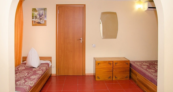 В двухэтажном здании с балконом находятся всего 6 номеров: 3 номера 2+1 человека, 2 номера 4+1 человек и один двухкомнатный 4+1 человек.