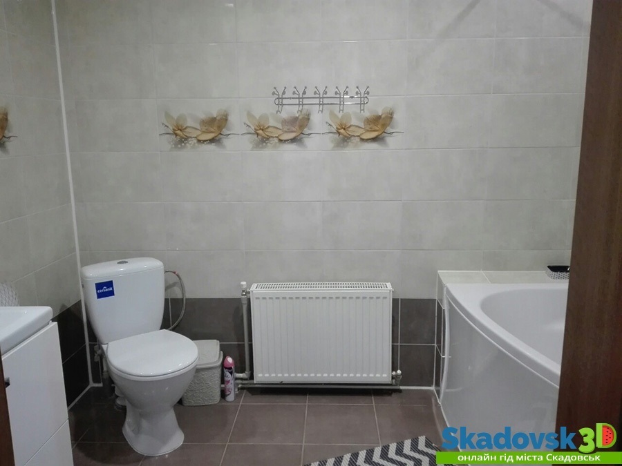 Новая мебель, холодильник, телевизор со спутниковым TV, стиральная машина, фен, утюг, кондиционер, Wi-Fi, санузел. Постельное белье, по два полотенца на человека, тапочки, туалетную бумагу, моющие средства. 2 этаж. дом для двух или одной семьи до 7 человек. 1 этаж - кухня-столовая, стиральная и посудомоечная машина, санузел с ванной. 2 этаж - две спальни, в одной спальне санузел-душ. Кондиционеры и телевизоры находятся в каждой комнате и на кухне. Постельное белье, по два полотенца на человека, одноразовые тапочки.