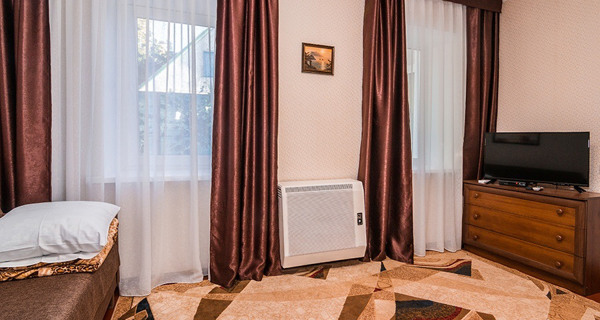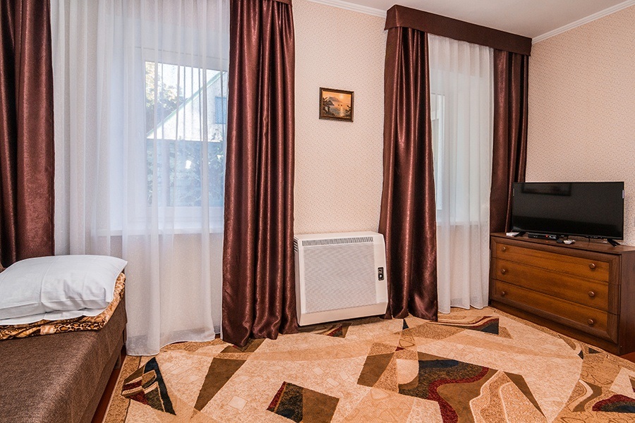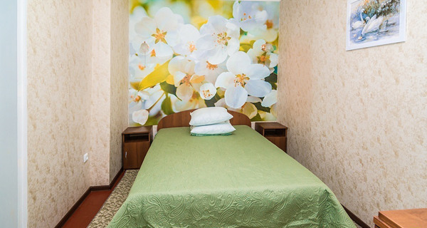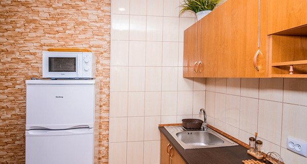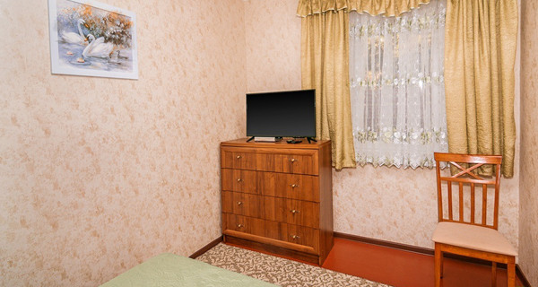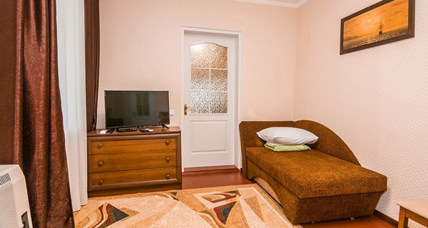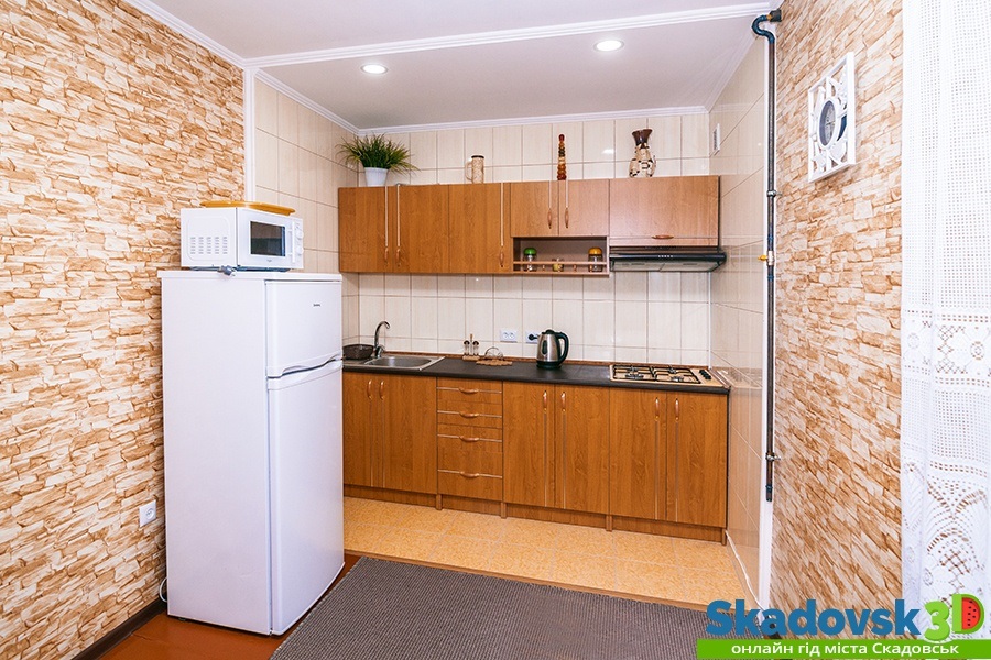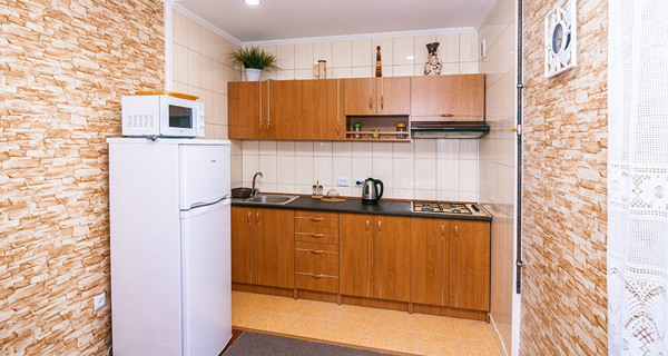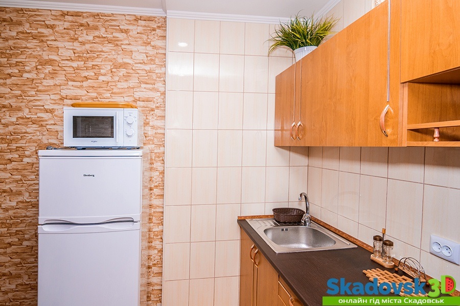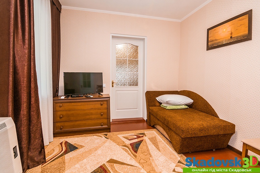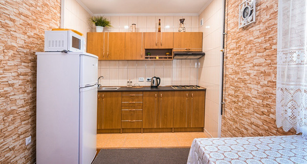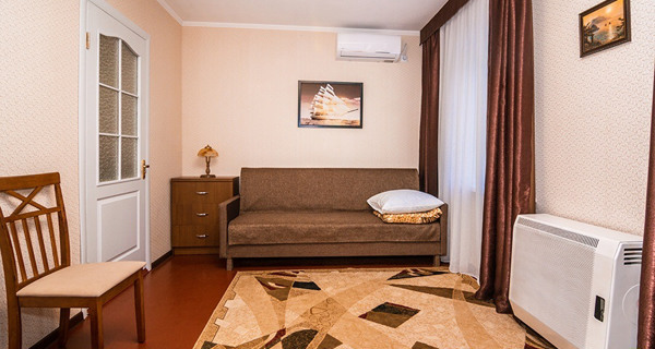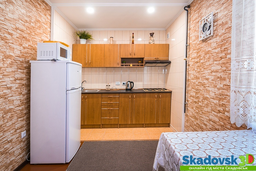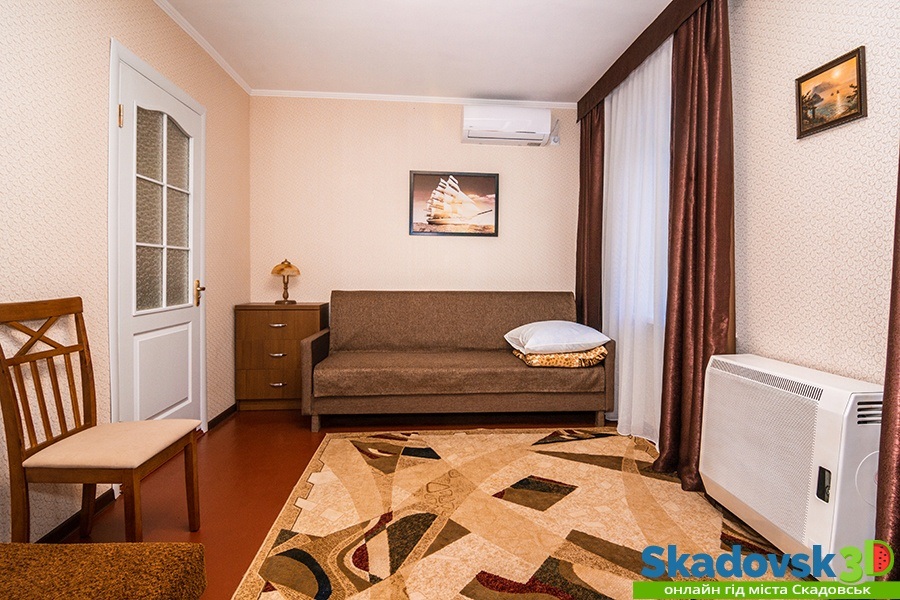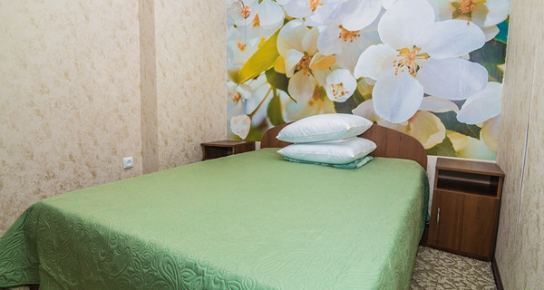 Своя кухня, кондиционер, две комнаты с кроватью и диваном.