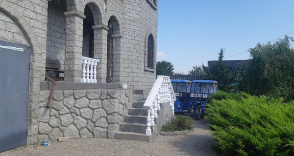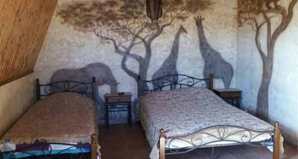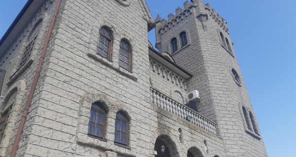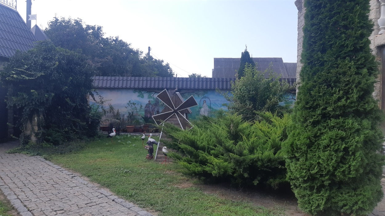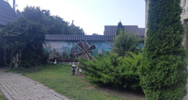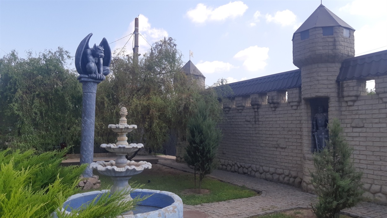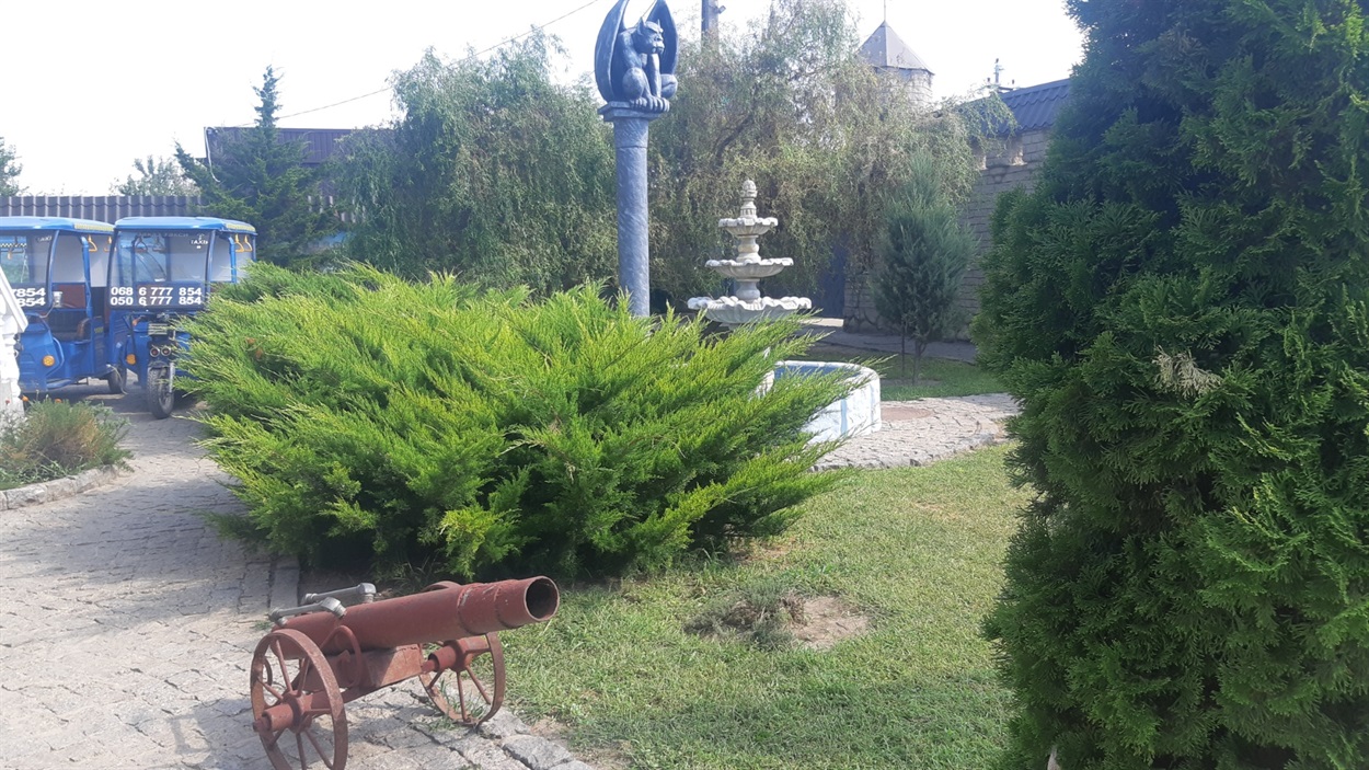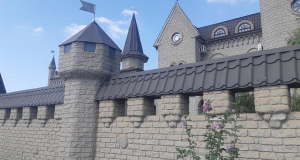 На территории есть кухня, парковка, стационарный бассейн 9х6, шезлонги, уютные беседки, мангал, бильярд, теннисный стол, спортивный зал, летний кинотеатр. Есть смотровая площадка на башне замка. Доставка на море электрорикшей по льготной цене.