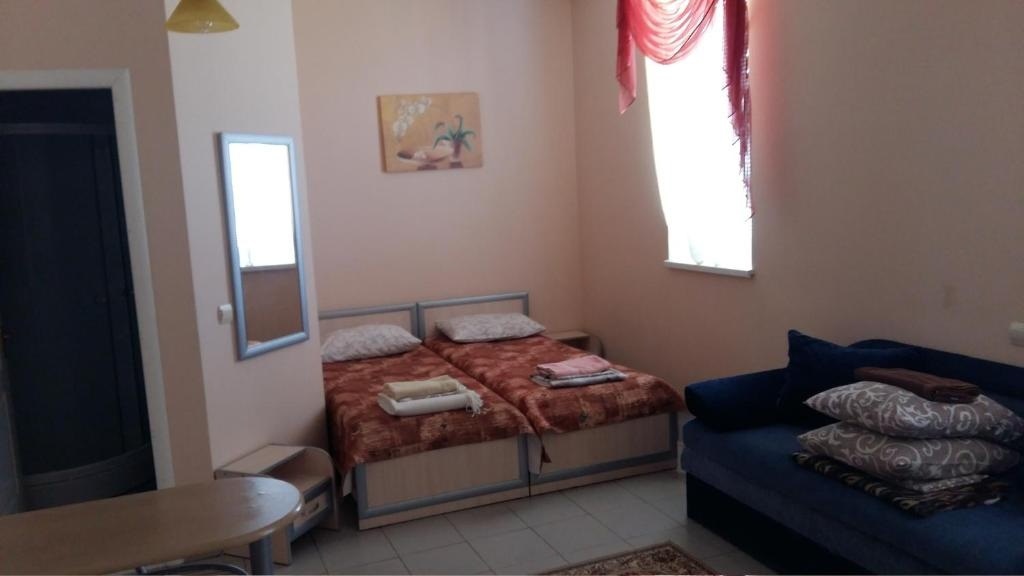 2-комнатный номер полулюкс 690-1250. В первой комнате 2 кровати, в гостиной - большой раскладывающийся диван. Возможно размещение до 5 человек. Есть кондиционер, набор минипарфюмерии.