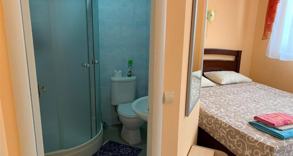 1-комнатный номер комфорт 550-950. Номер с кондиционером и видом на море. В номере есть туалет и душ с комплектом полотенец и набором мини-парфюмерии.
