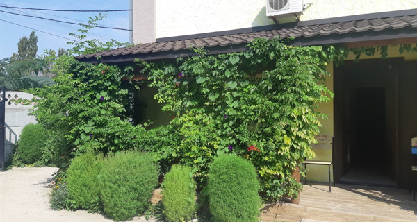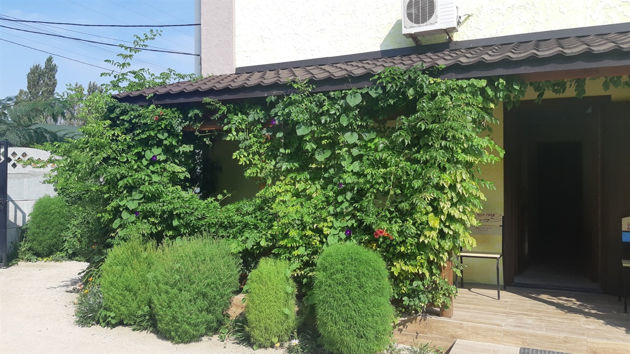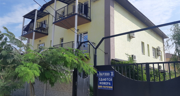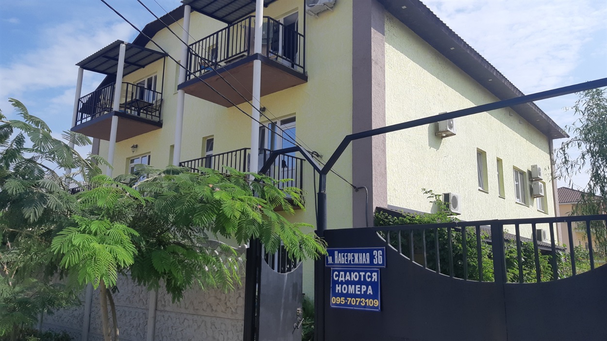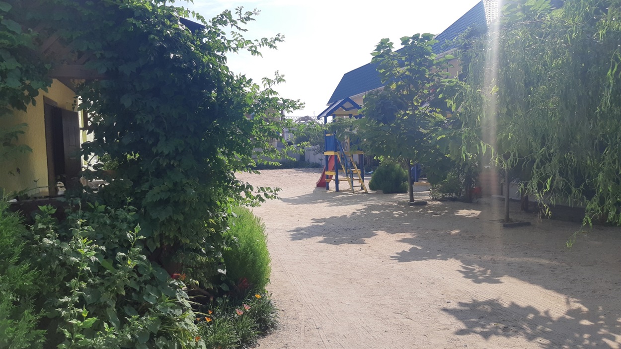 Отель расположен в самом центре курорта Счастливцево на первой береговой линии за лиманом. Рядом находятся два супермаркета, рынок, колесо обозрения и центральная аллея к морю (так называемая "Стометровка")