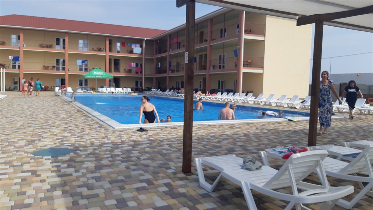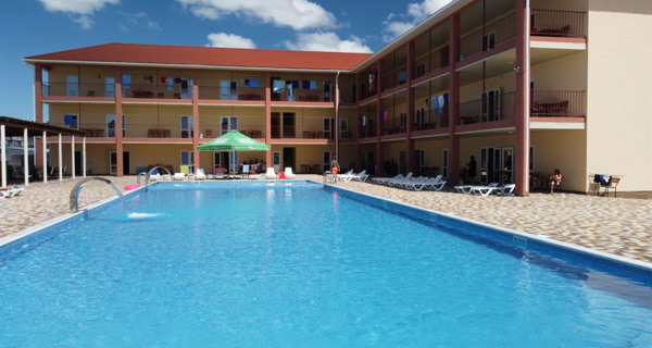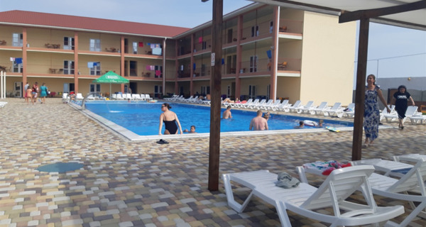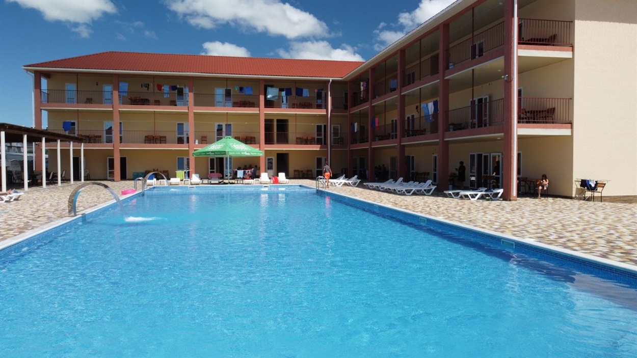 Пансионат расположен в самом центре Счастливцево, на первой линии и отделен от моря лиманом. Рядом проходит центральная аллея с кафе, магазинами и развлечениями, ведущая к морю.
