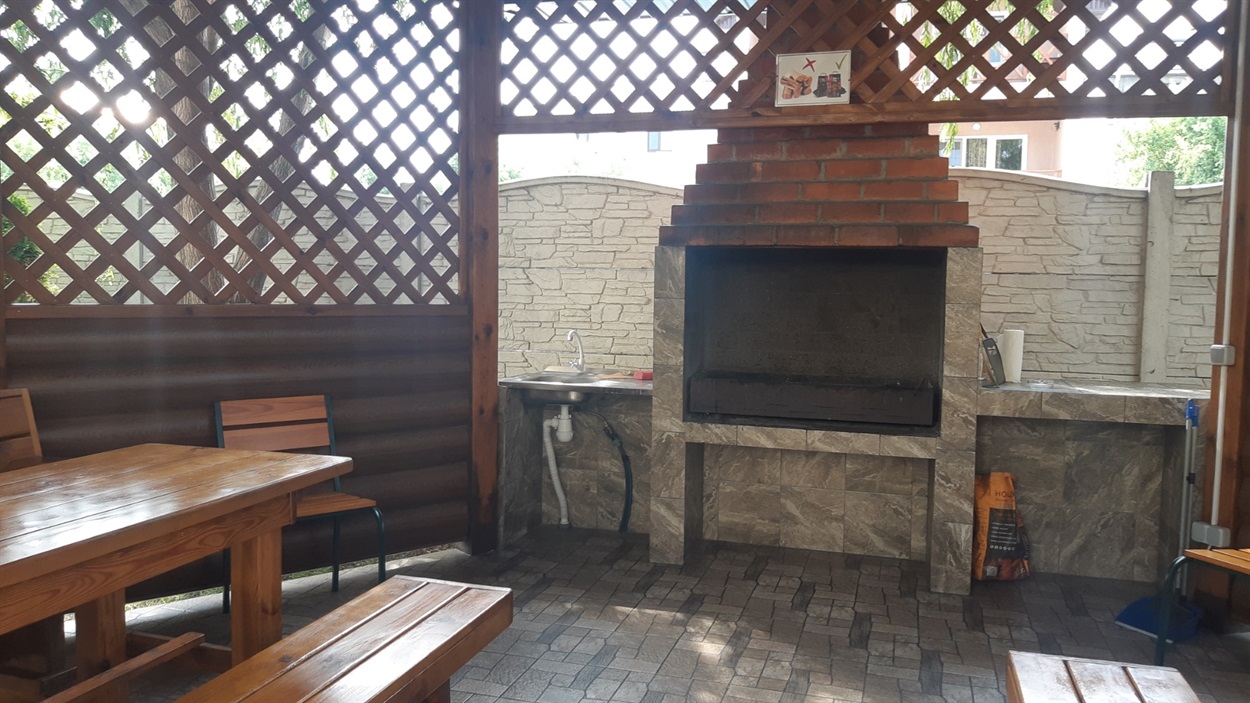 Комплекс состоит из нескольких корпусов, расположенных на небольшой территории, где есть бассейн с подогревом, парковка и детская площадка.