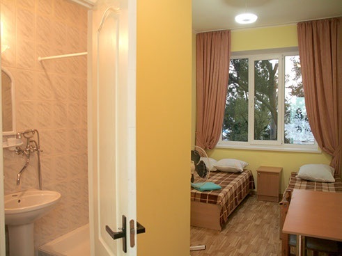 Есть летняя кухня. В отеле имеются номера с кухней на три номера. В номерах: спутниковое ТВ, туалет, душ. Предоставляются туалетные принадлежности кроме шампуни.