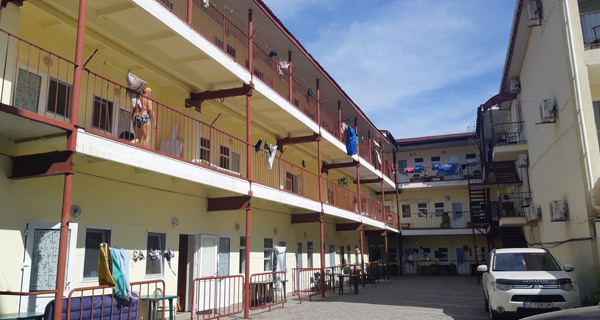 На территории отеля есть летняя кухня и мангал для приготовления шашлыков. Можно выбрать номер с видом на море или с видом на двор.