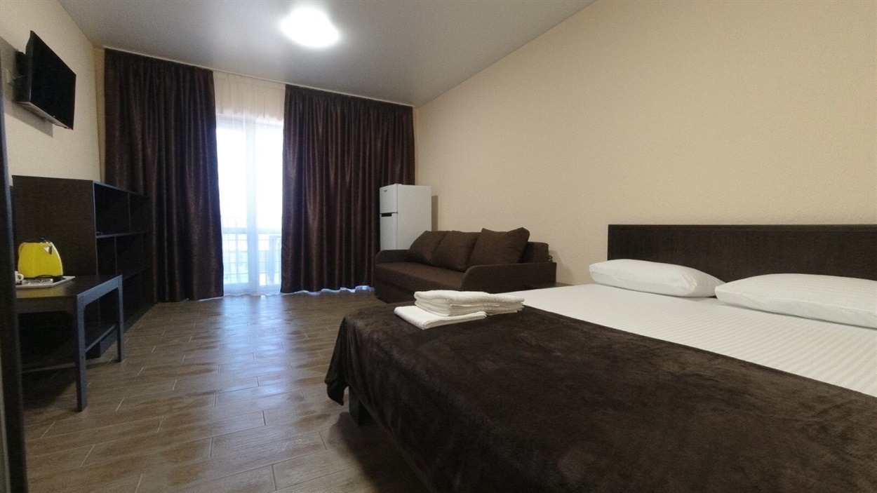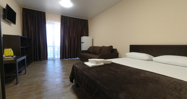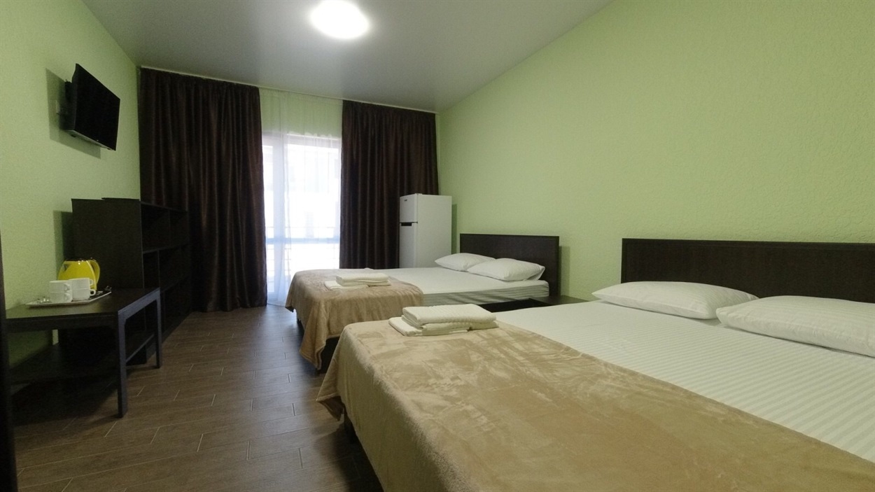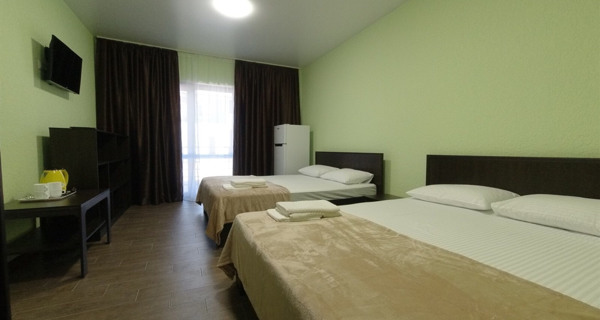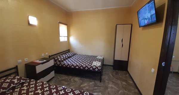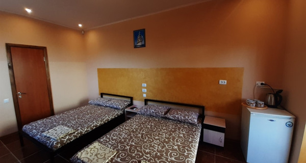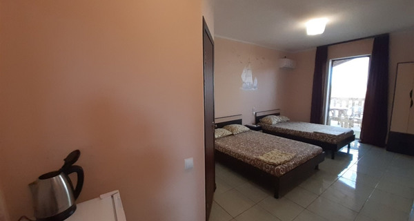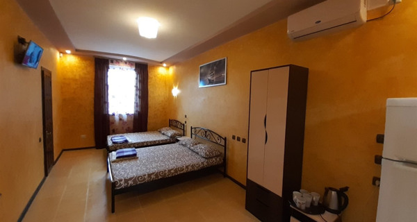 Гостевой дом расположен в 500 м от центра курорта и в 250 метрах от моря. Открылся в 2018 году и насчитывает 10 улучшенных номеров типа "Люкс". Номера рассчитаны на 2-5 человека. В номерах кондиционер, санузел с душевой кабиной, телевизор. Есть Wi-Fi. Туалетные принадлежности выдаются.